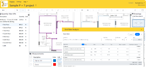 Drawings are uploaded to the tool. Quantities and cost can be managed right within the tool